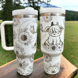 Baby Highland Cow Sunflower tumbler|Personalized water bottle 30oz or 40oz Tumbler with Handle, Birthday Anniversary Tumbler Gift HFN