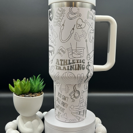 Athletic Training Laser Engraved 30oz or 40oz Tumbler with Handle, Birthday Anniversary Tumbler Gift HFN, Custom Engraved Seamless Tumbler, Double Wall Insulated Cup