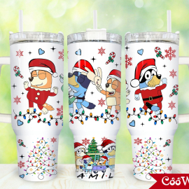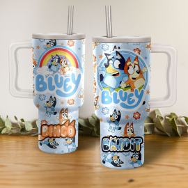 Bandit and Bingo Heeler Blu3y Cartoon Custom Quencher 30oz or 40oz Stainless Steel Tumbler With Handle HG