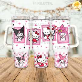 Kuromi Coffee Tumbler 30oz or 40oz, Valentine Movies Tumbler, Hello Kitty Fans Gift Valentine 40oz Quencher Tumbler, Valentine Cartoon 40oz Tumbler HFN