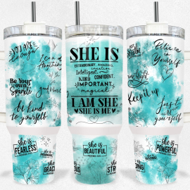 She Is Me Daily Affirmations 30oz or 40oz Tumbler Inspirational Woman Tumbler Positive Affirmations Tumbler Gift For Her Him Birthday Gift LN