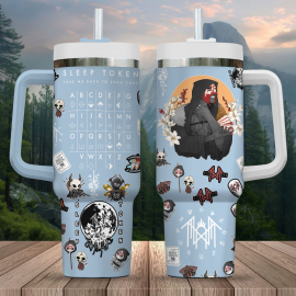 Sleep Token Blue White Text Tumbler 30oz or 40 Oz Tumbler Tumbler Gift HG Tumbler With handle