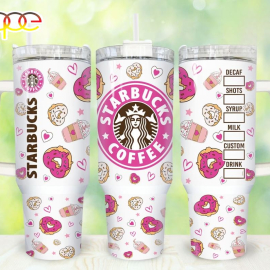 Starbucks Kitty Cup Valentines Coffee 30oz or 40oz Quencher Tumbler Gift for her Him Birthday Gift LN Happy Valentines Day Gift For Couple Pink Doughnut Tumblers