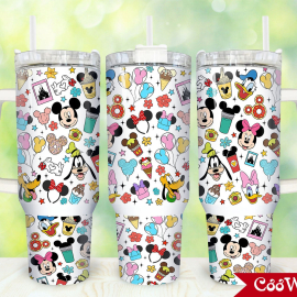 Spring Cartoon Disney Mickey Goofy Donald Characters 30oz or 40oz Tumbler with Handle, Birthday Anniversary Tumbler Gift HFN