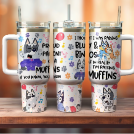 Blu3y Rasing Muffin Cartoon 30oz or 40oz Tumbler HG Mother’s Day Gift Pink