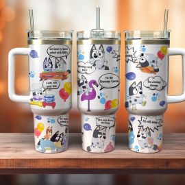 Blu3y Heeler Family Cartoon Custom Quencher 30oz or 40oz Stainless Steel Tumbler With Handle HG