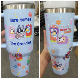 Blu3y Heeler Family Here Come The Grannies Cartoon Custom Quencher 30oz or 40oz Stainless Steel Tumbler With Handle HG