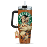 Arcanine Coffee Pokemon Anime Custom 30oz or 40oz Quencher Stainless Steel Tumbler With Handle, Best Gift Idea NVA, Best Gift Idea NVA