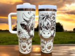 Baby Highland Cow Sunflower tumbler|Personalized water bottle 30oz or 40oz Tumbler with Handle, Birthday Anniversary Tumbler Gift HFN