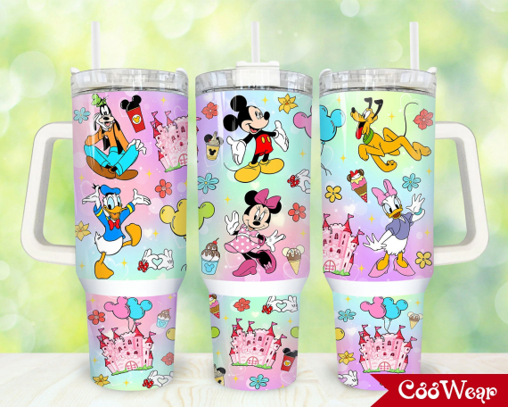 Disney Magic Cartoon Friends Mickey Donald Goofy 30oz or 40oz Tumbler with Handle, Birthday Anniversary Tumbler Gift HFN