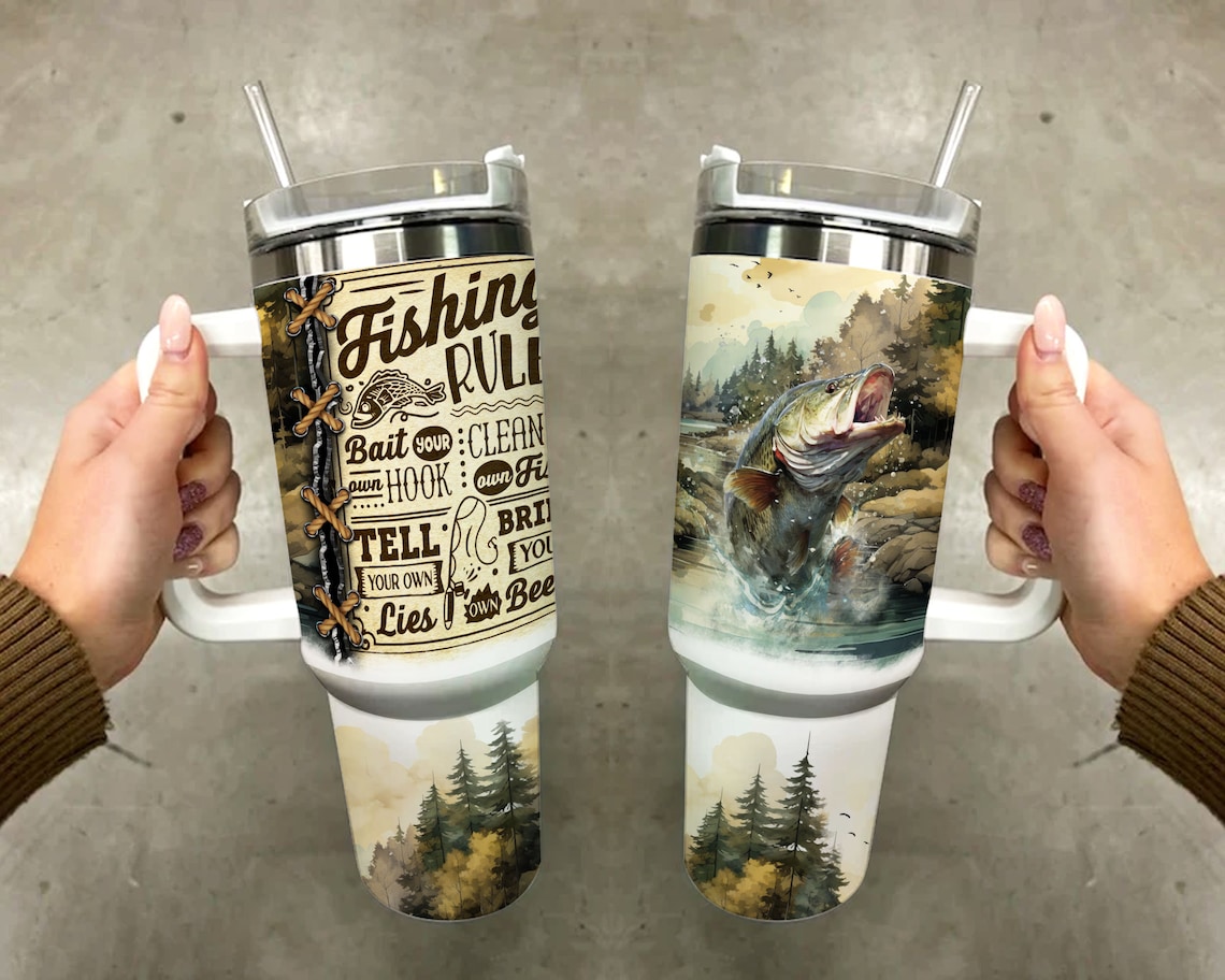 Fishing rules 30oz or 40oz Quencher Tumbler Gift For Her Him Birthday Gift LN Lake life Waterslide