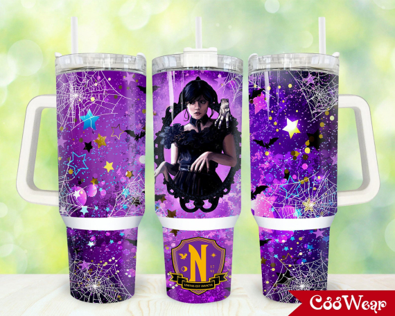 Horror Halloween Movie Wednesday Addams 30oz or 40oz Tumbler with Handle, Birthday Anniversary Tumbler Gift HFN