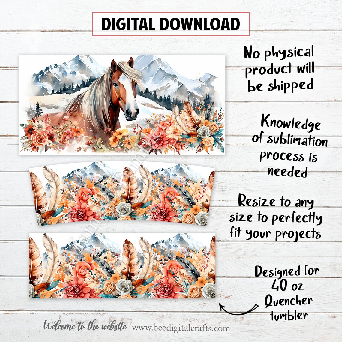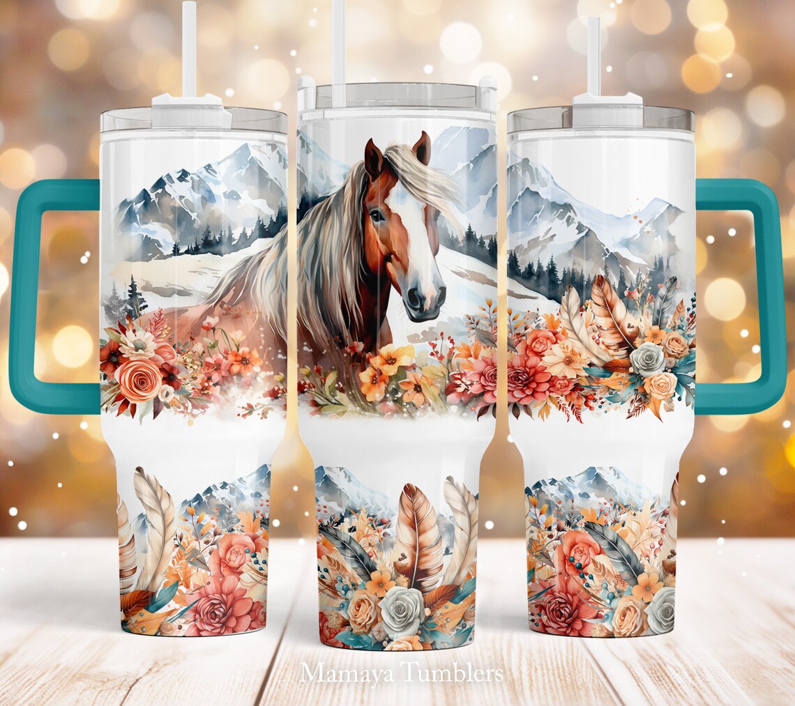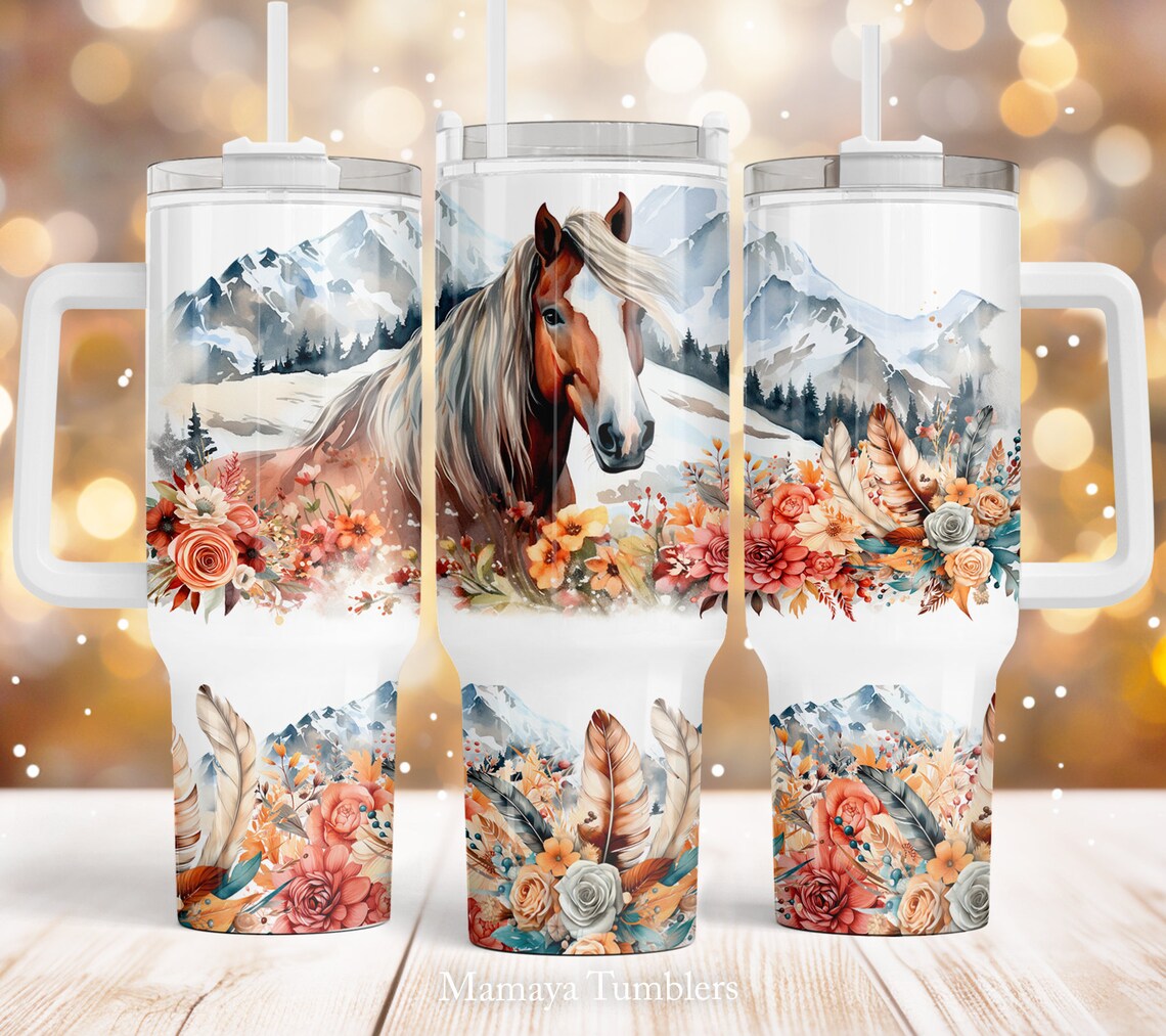 Horse 30oz or 40oz Quencher Tumbler Gift For Her Him Birthday Gift LN Mountain landscap Boho Flowers Waterslide