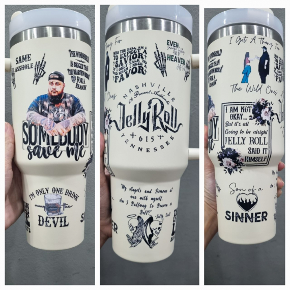Jelly Roll The Beautifully Broken Tour 40oz 30oz or 40oz Stainless Steel Tumbler With Handle HG