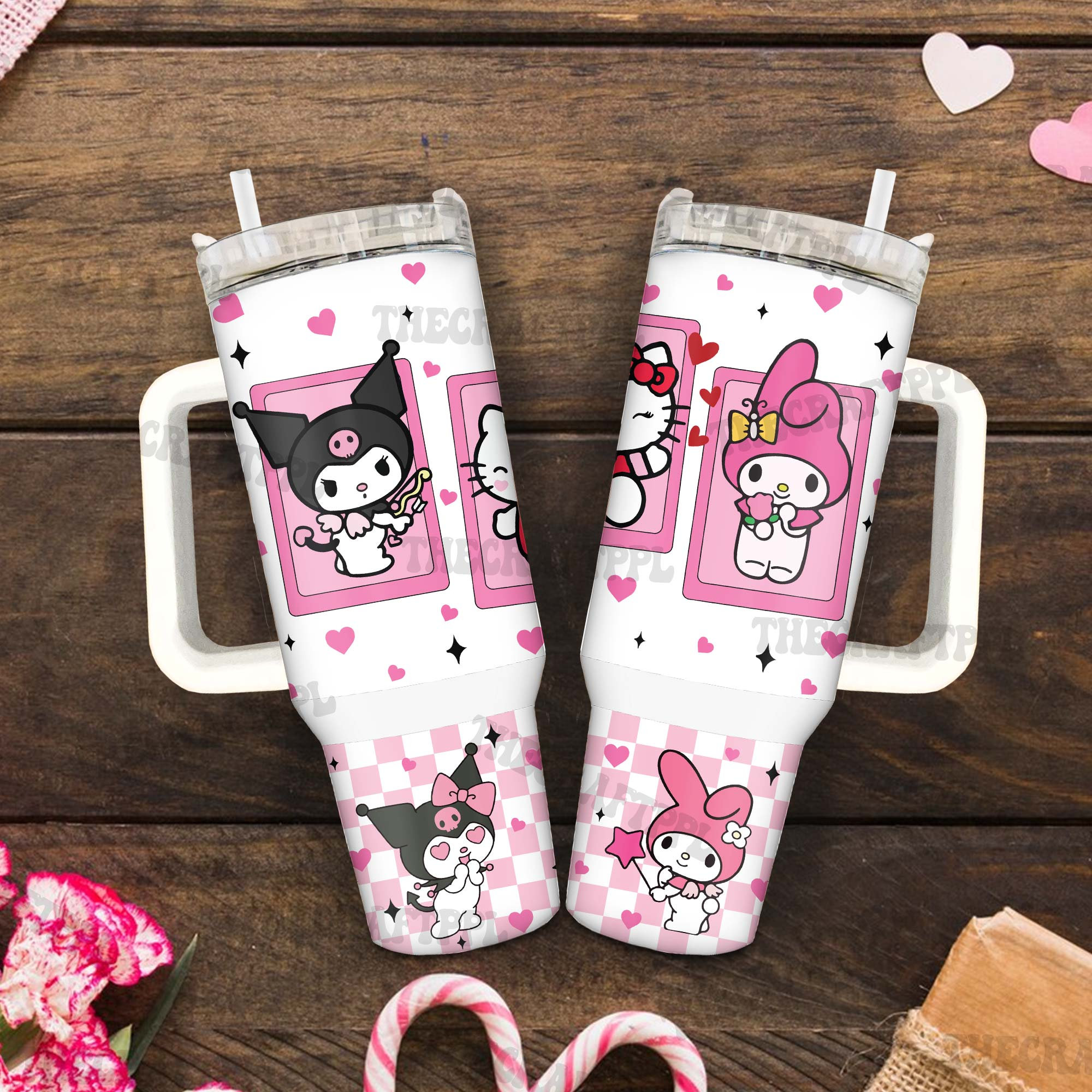 Kuromi Kitty Melody Hello Kitty Friends 30oz or 40oz Tumbler with Handle, Hello Kitty Fan Gift, Birthday Anniversary Tumbler Gift HFN