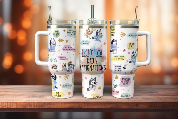 Mom Daily Affimation Blu3y Dog Cartoon 30oz or 40oz Quencher Tumbler LN Blu3y And Friends