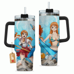 Nami One Piece Anime Custom 30oz or 40oz Quencher Stainless Steel Tumbler With Handle, Best Gift Idea NVA, Best Gift Idea NVA