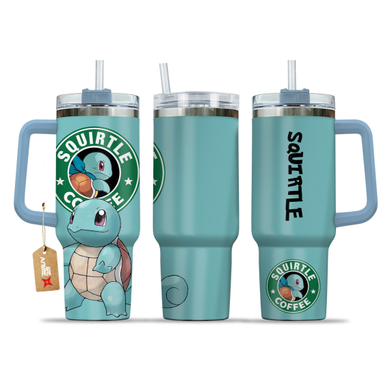 Squirtle Coffee Pokemon Anime Custom Quencher 30oz or 40oz Stainless Steel Tumbler With Handle HG