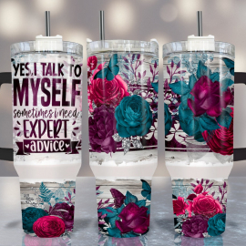 I Talk To Myself 30oz or 40oz Tumbler Quencher Tumbler Gift For Her Him Birthday Gift LN Floral Tumbler With Handle Flower Watercolor Quotes